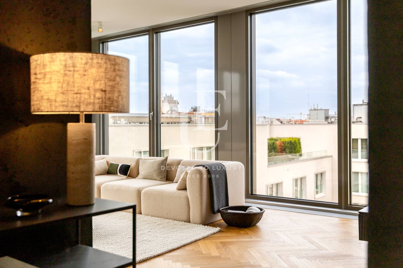 Unique Estates | Christie's International Real Estate presents an exceptional 2-bedroom apartment in the prestigious and sought-after The Seven complex, located on the 5th floor of the complex’s modern high-rise. The apartment impresses with exceptional light, perfect functionality, and stylish interior design, with panoramic French windows providing breathtaking views and making the sky part of the living space.