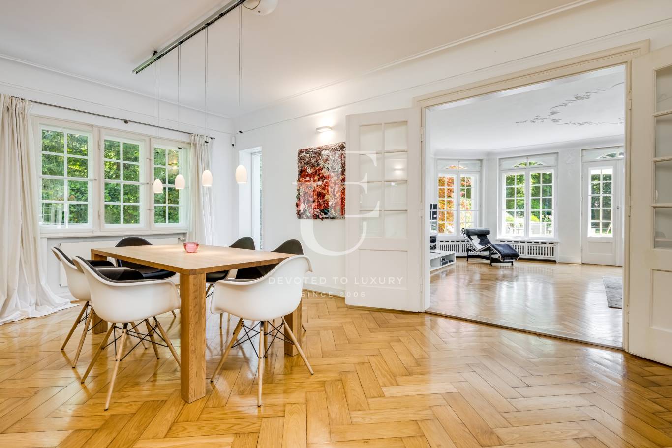 In 2002, under the direction of architects from a + p Architekten, a comprehensive refurbishment was carried out. High-quality details such as herringbone parquet flooring, the staircase, coffered doors, box-type windows, and decorative stucco elements were carefully restored. The kitchen and bathrooms were stylishly modernized, and the garden was redesigned by a renowned landscape architect, combining classic elegance with modern comfort.